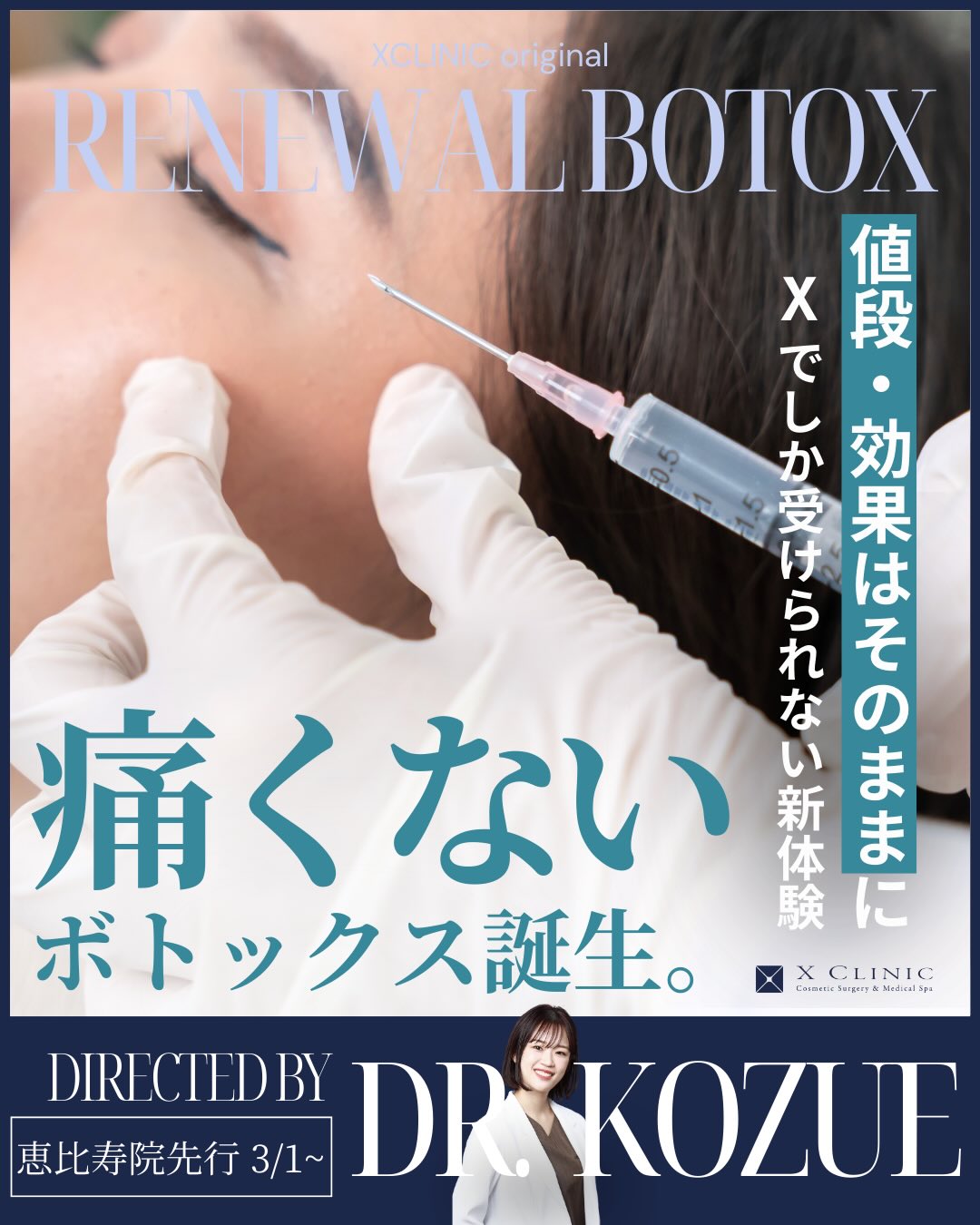 ボトックス注射とは、ボツリヌストキシンという筋弛緩作用のある薬剤を筋肉に注入することで、その筋肉の緊張を緩和させ、主に表情じわを改善する治療です。